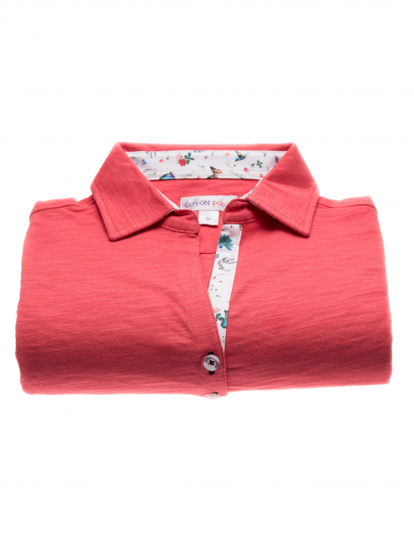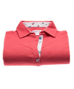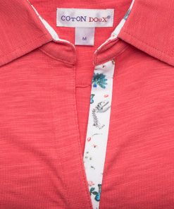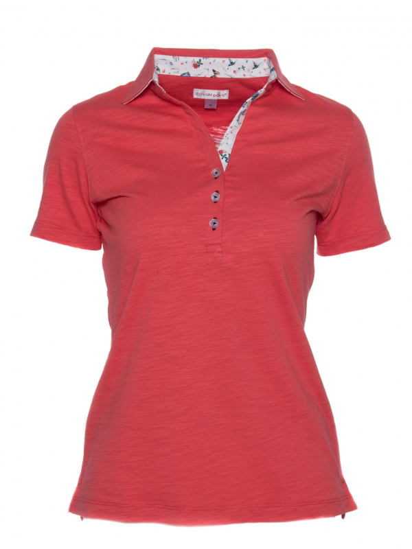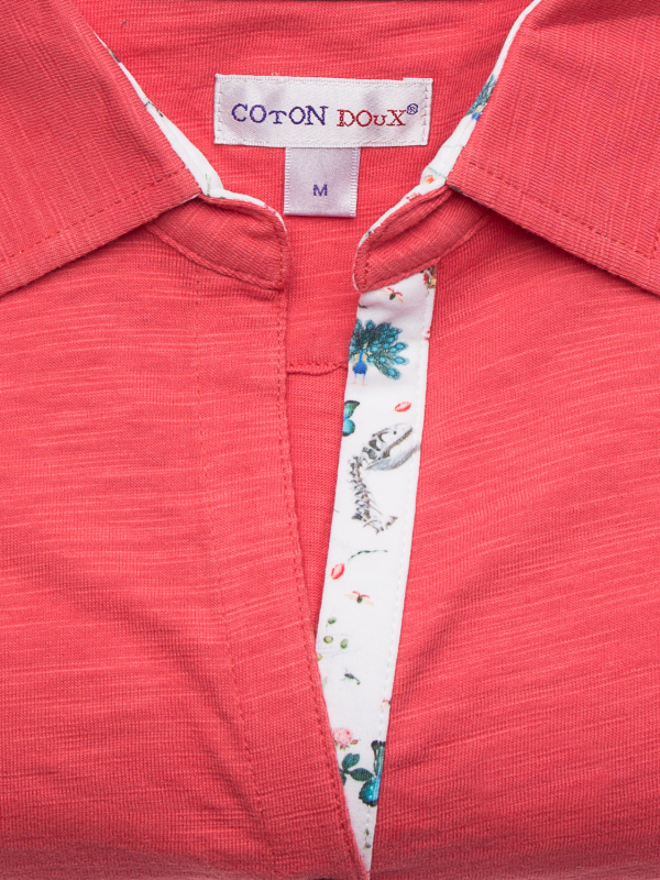 Coton Doux Coral Women’s Slim Fit Cotton-blend Polo Shirt With Nature Inner Lining Print