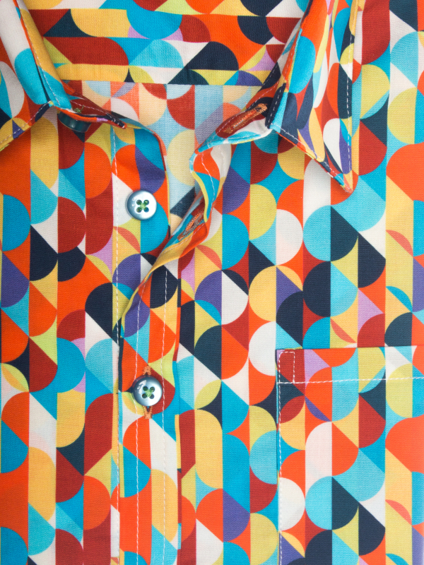 Let your child discover the psychedelic and colourful world of the seventies with this geometric pop print shirt! Paired with jeans, light coloured or raw denim, your child will be ready to shake up the playground! Its soft collar, loose fit and double-button cuffs will add an additional, stylish touch.