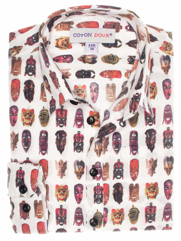 “Take off the masks!”, their little friends will ask. But nonetheless, your kid will keep proudly wearing this multicultural print shirt. Worn with chocolate-coloured chinos, it will be a perfect match! Its loose fit, soft collar and double-button cuffs definitely do this print justice, and there’s no doubt that your kids won’t love it!