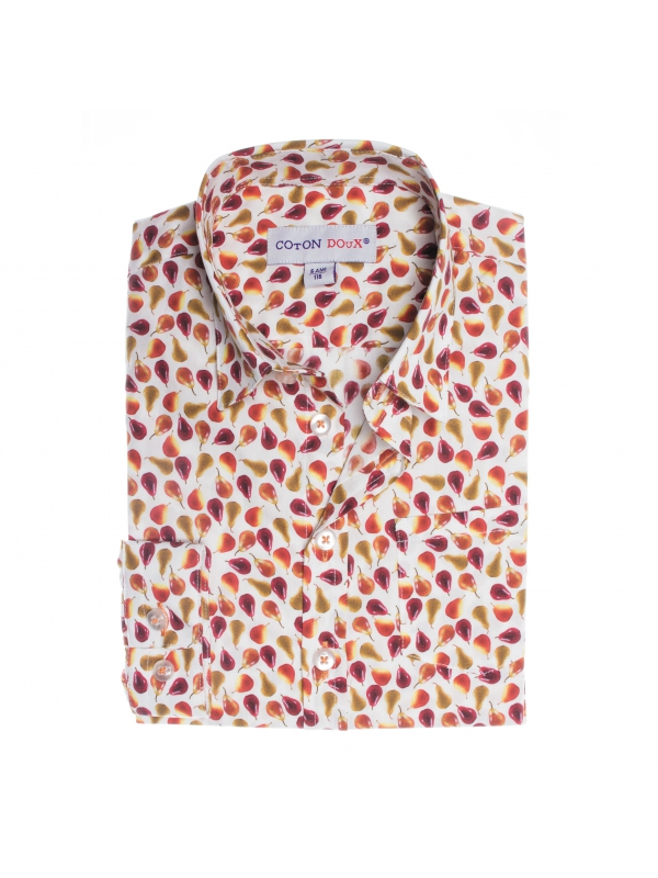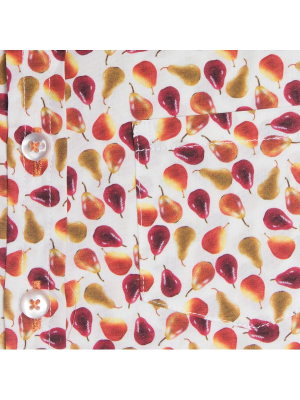 Nothing can go pear shaped with this pretty pear decorated shirt with a loose cut and supple collar. Like taken from a picnic basket, there is no doubt that your children will look good enough to eat once dressed in this design. Wear with beige or dark red Bermuda shorts for a very springtime look.