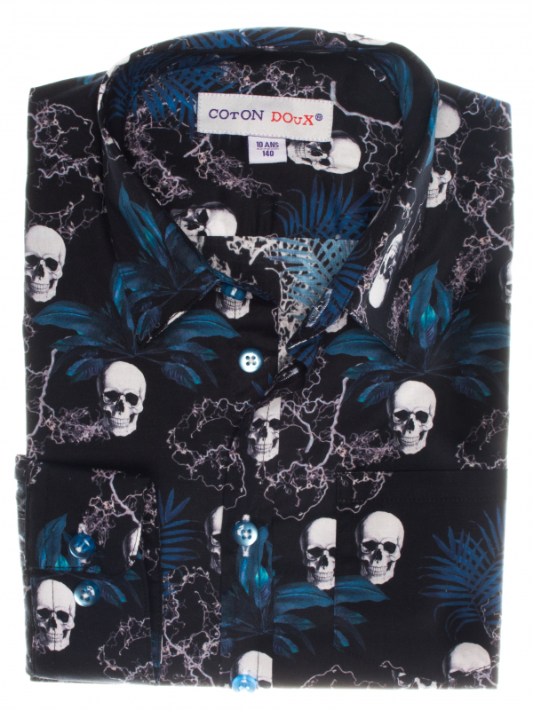 This design will definitely be a favorite for all the little rock fans out there! This skull print, in combination with the dark background, will look great with black or charcoal-grey jeans. Its soft collar and loose fit make it great for playtime, whereas the double-button cuffs and the right-hand side pocket add a stylish touch!