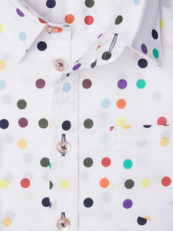 If the shirt is not his or her strength, opt for this “passe-partout” classic, yet playful shirt. Its colorful dots print on white background will perfectly match with a pair of jeans for a casual look. Your child will fall for its comfy charms thanks to its loose cut, soft collar and double-button cuffs.