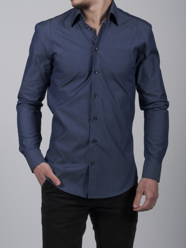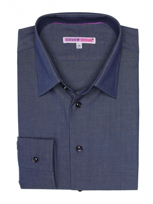 Coton Doux Men’s Blue Denim Fitted Shirt