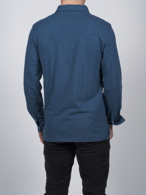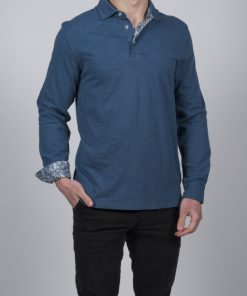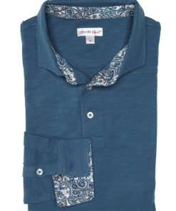 If you are a fan of elegance and lightness, this blue-grey long sleeve polo shirt in pure cotton with arabesque inner lining print is for you! You’ll keep it simple, but still have a unique and eye-catching pattern hidden under the cotton piqué collar and two-button placket. The slim fit and double button cuffs will keep you comfortable and looking good all day long. Wear it with a caramel coloured chino and brown boots: you’ll be classy in any situation!