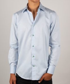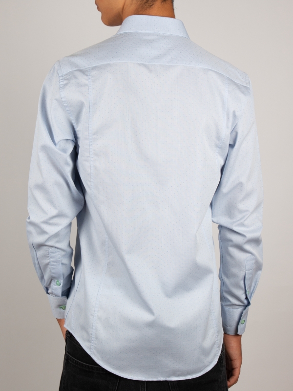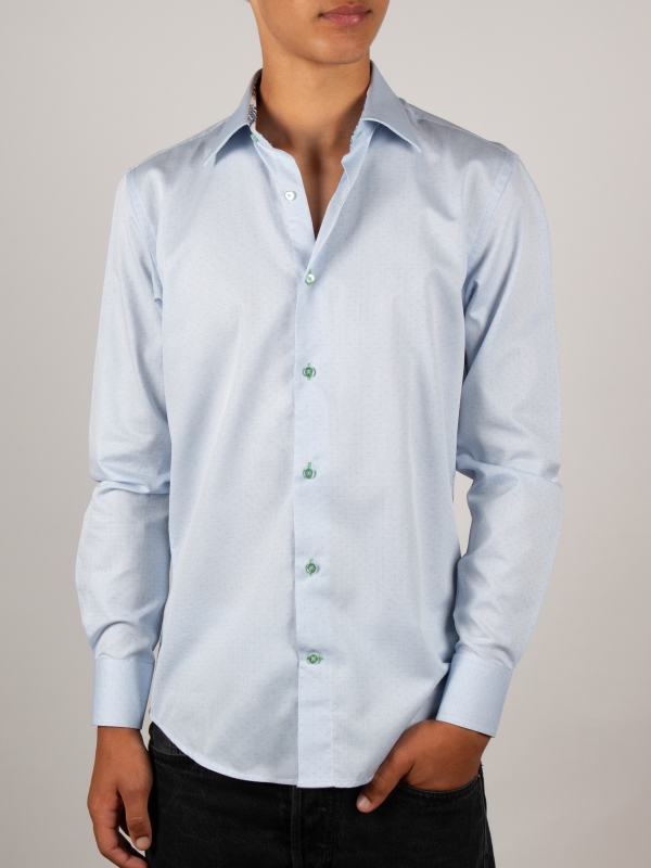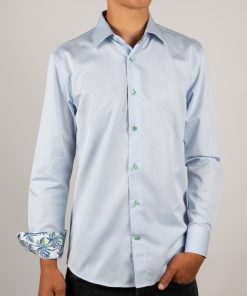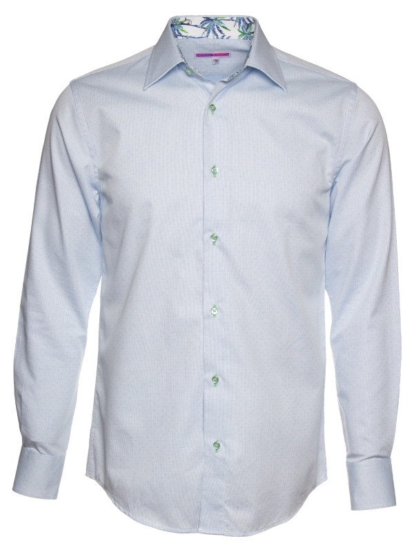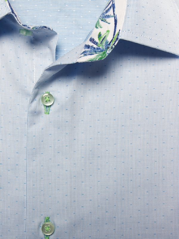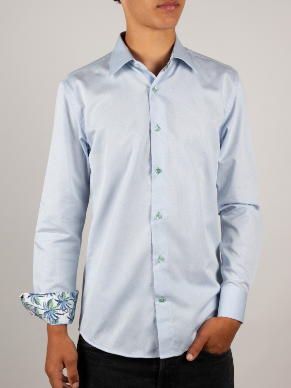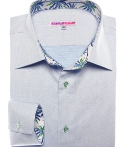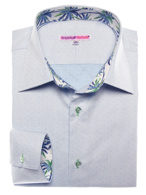 Coton Doux Men’s Blue Jacquard Regular Shirt With Palm Trees Inner Lining Print