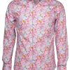 Coton Doux Men’s Blue Jacquard Regular Shirt With Palm Trees Inner Lining Print