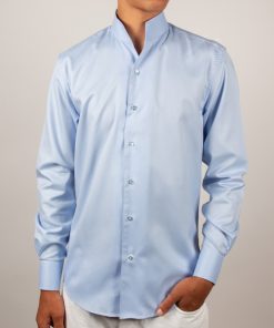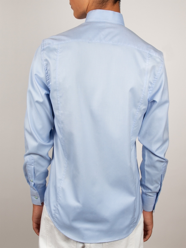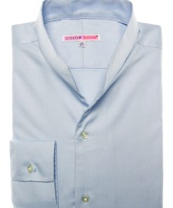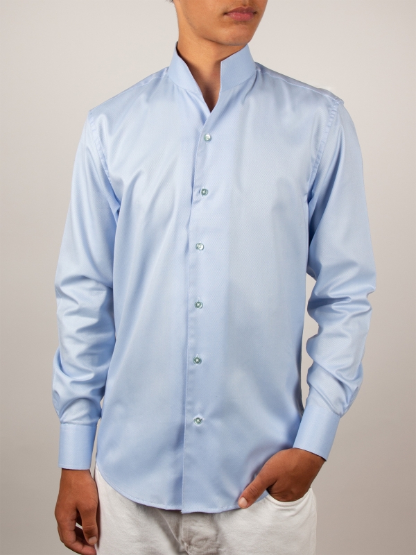 Coton Doux Men’s Blue Jacquard Regular Shirt With Stand-up Collar