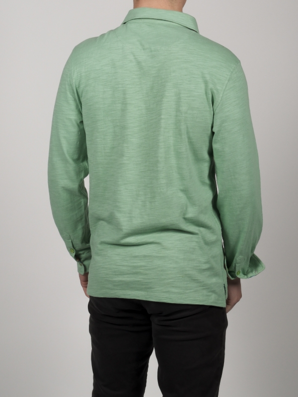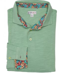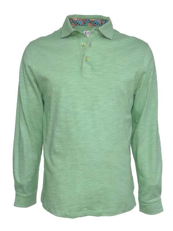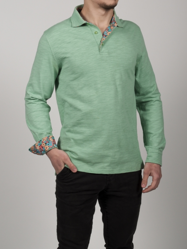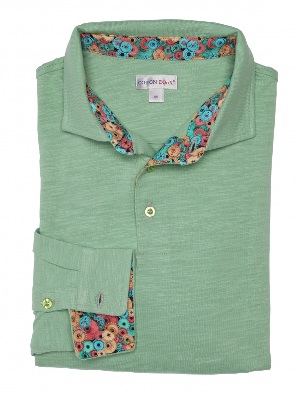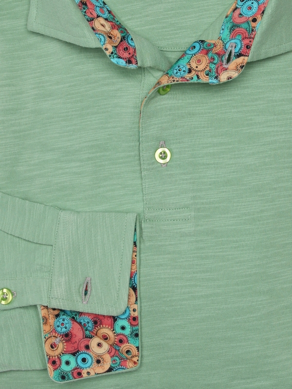 Coton Doux Men’s Emerald Green Regular Fit Polo Long Sleeves Shirt With Machinery Inner Lining Print