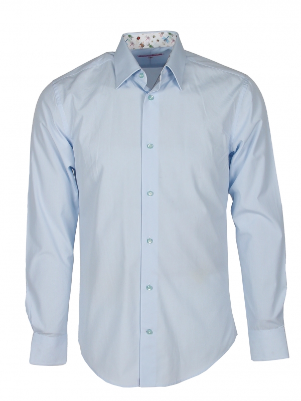 Coton Doux Men’s Light Blue Poplin Regular Shirt With Insects Inner Lining Print