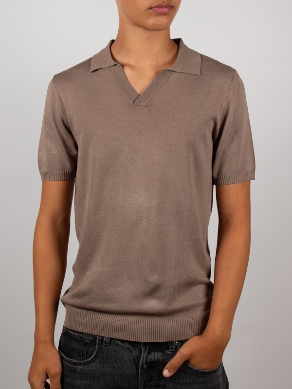 Elegant and natural, this men’s brown open-collar polo features a warm color that complements any look. Its regular fit and short sleeves give it a modern silhouette, offering both comfort and refinement.