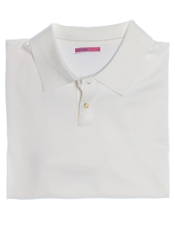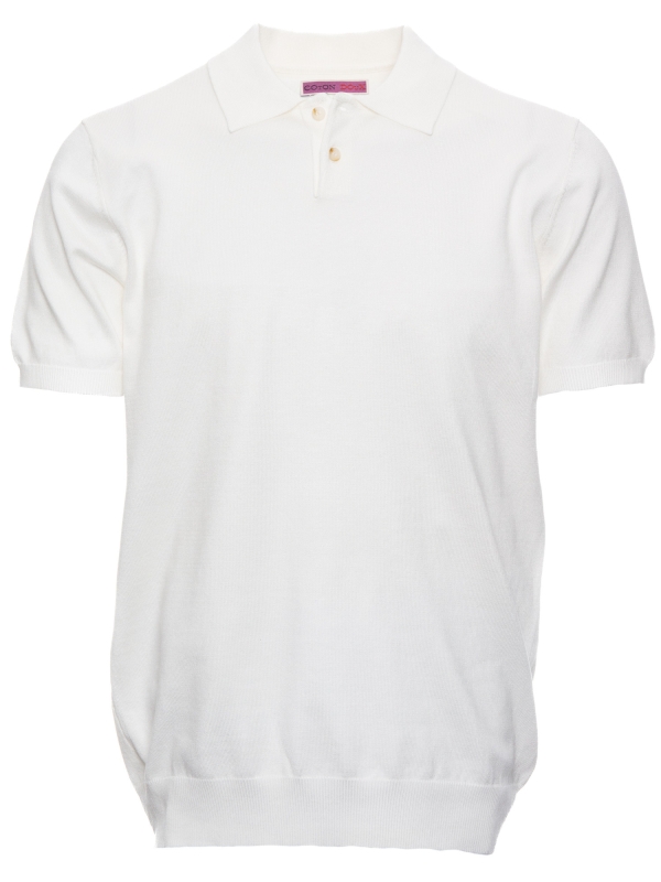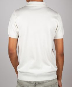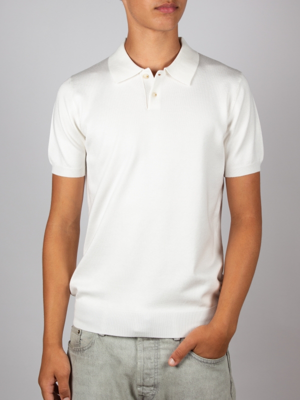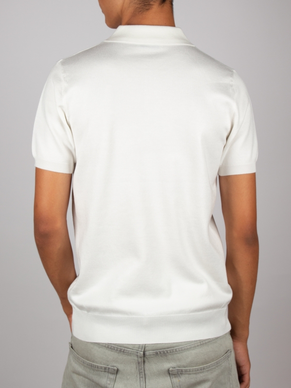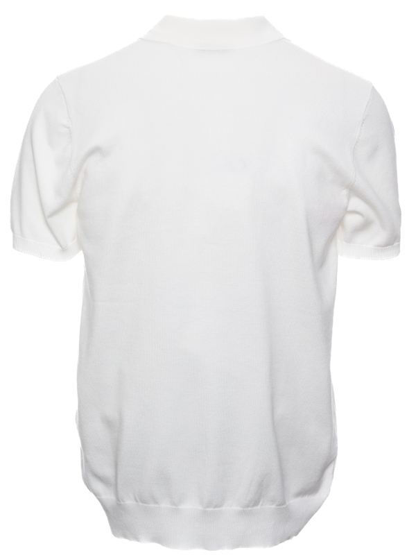 This white knit polo with a classic two-button collar combines simplicity and sophistication. Its regular fit and short sleeves make it a perfect choice for a clean, elegant look. Versatile, it works equally well for a casual style or a more polished outfit, making it ideal for summer days.