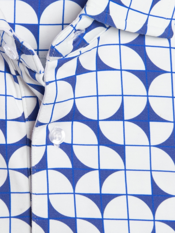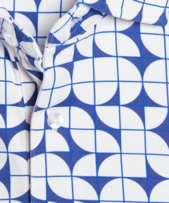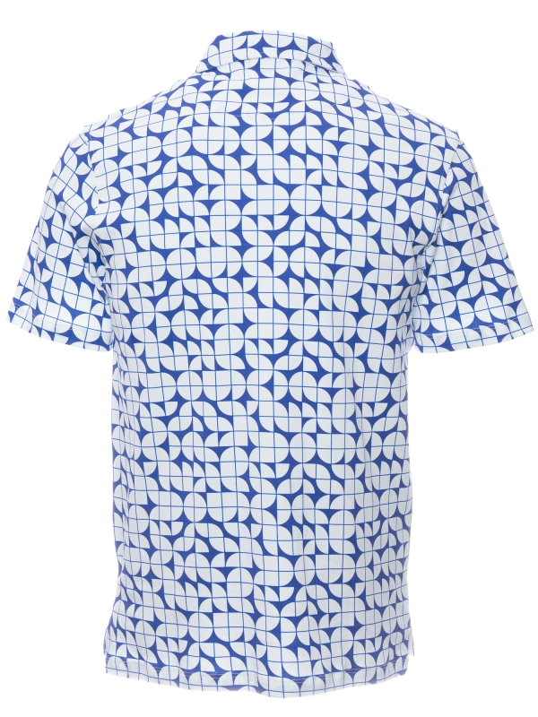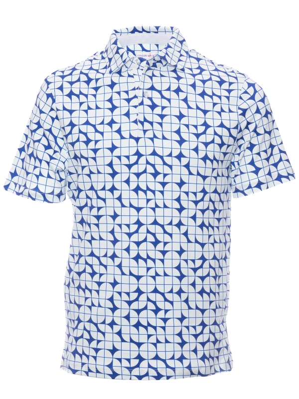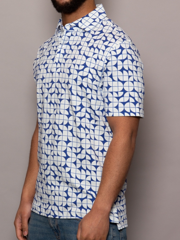 Minimalist yet striking, the Bauhaus Polo features bold geometric shapes in crisp blue and white. Crafted from mercerized cotton jersey, it offers a smooth, lightweight feel. The cotton piqué collar adds refinement, while the regular fit ensures a sleek silhouette. Finished with a two-button placket, this polo is a perfect fusion of art and fashion for a modern look. A timeless piece for those who appreciate contemporary design.
