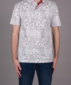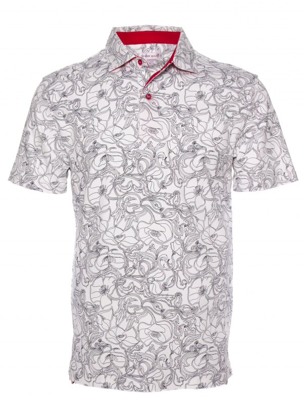 What better way to hypnotize your audience than with this polo shirt with black and white flower print. Its composition in cotton jersey, its two-button placket and its regular fit make this polo shirt a pleasant outfit to wear. The orange cotton piqué collar is the colorful touch of this discreet look. Wear it with black jeans and white sneakers.