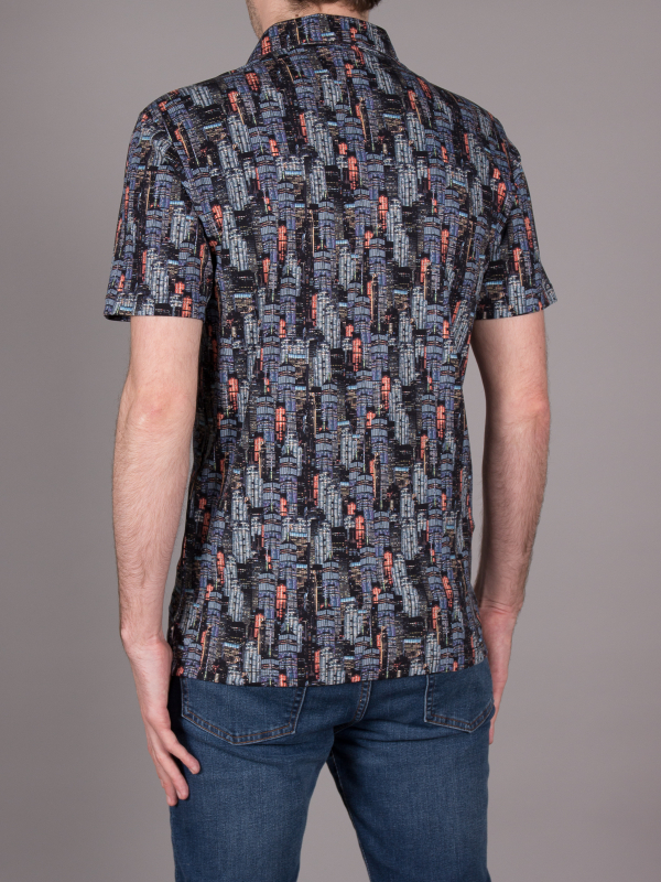 Are you a convinced city man? Affirm it with this polo shirt with the buildings print. Thanks to this night shot, you will be able to wear these colors easily with all your jeans: black, grey, raw, light. Its composition in mercerized cotton jersey, its regular fit and its double button will give you softness and comfort to complete your day. Plan to wear it on the evening? Slip it under a light grey cardigan and bring out its cotton piqué collar in the same tone.