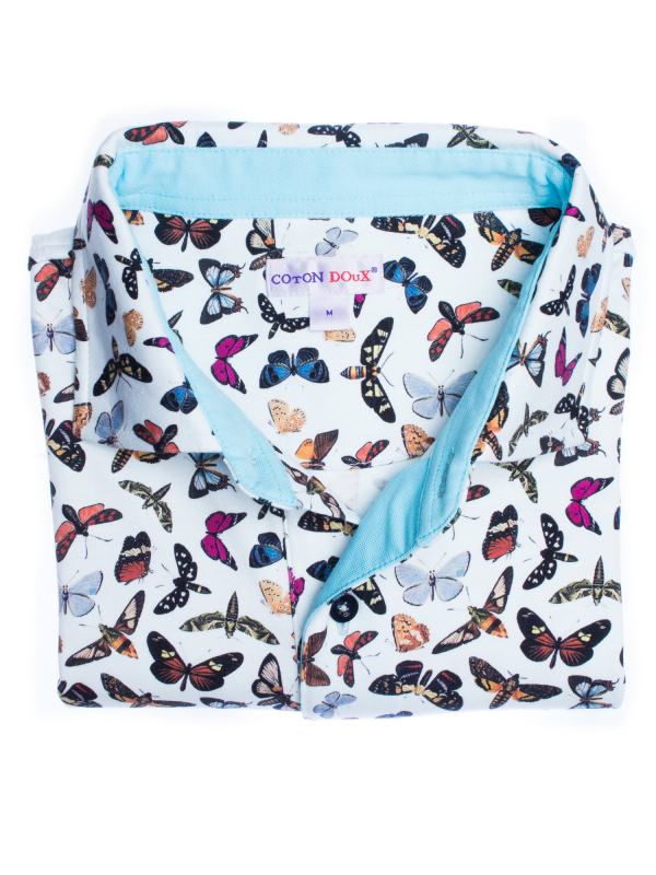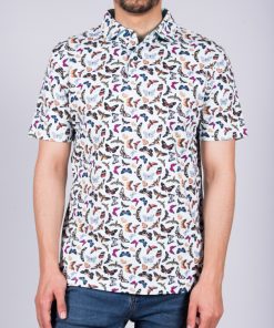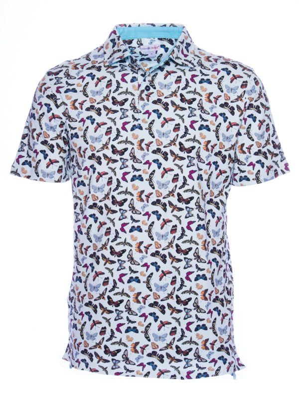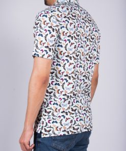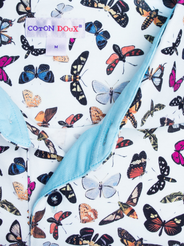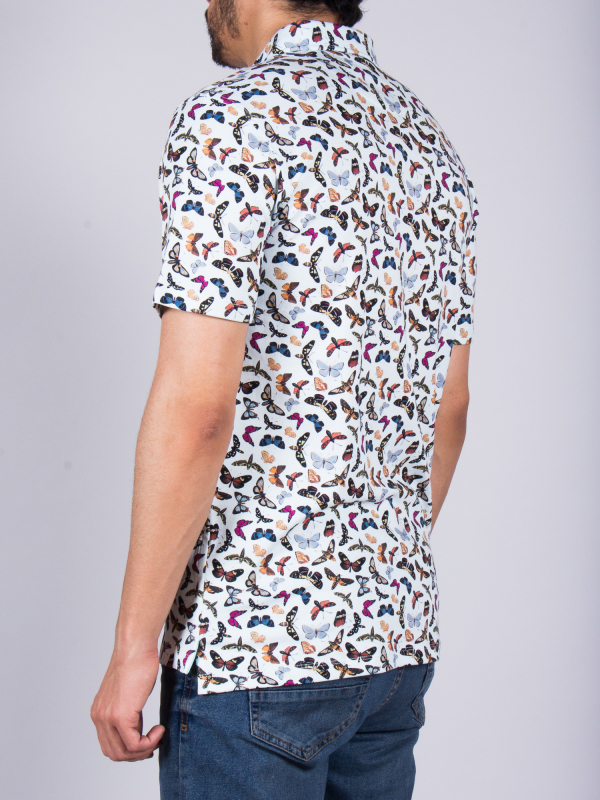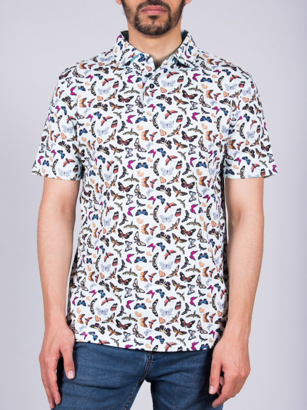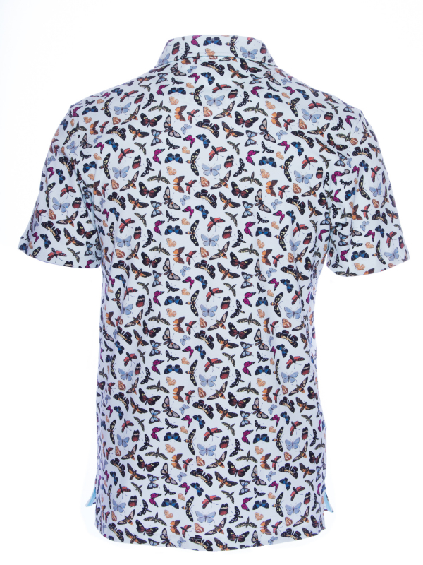 Let the butterfly print blossom on this short sleeves polo shirt. You can feel springbecause of the colors but also because of the mercerized cotton jersey and the two-button placket that make your look casual. The regular cut and the cotton quilted collar from the classic shirt give it all its chic. Create a nice contrast by wearing with black jeans and sneakers and go flutter around!