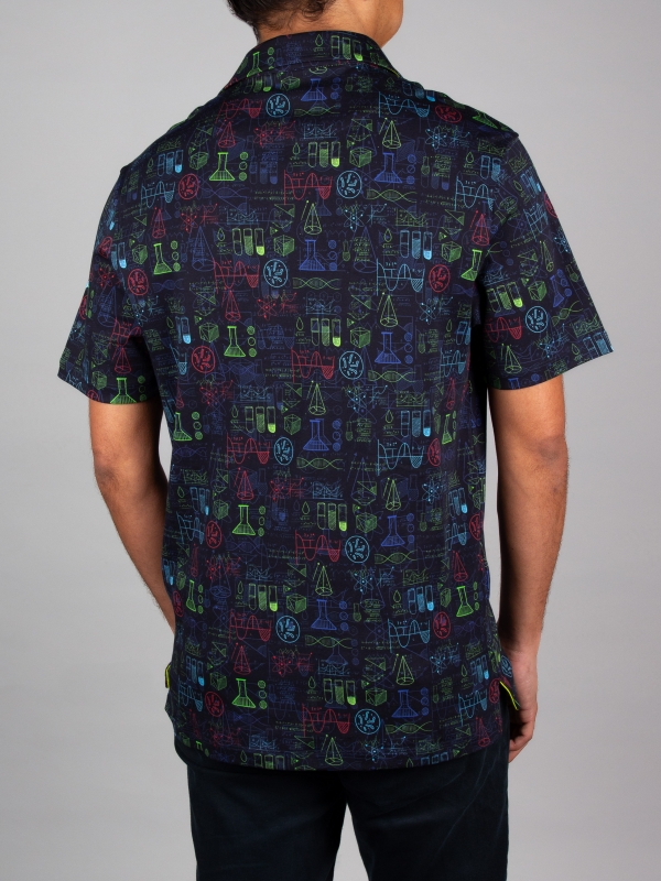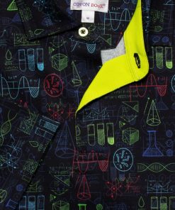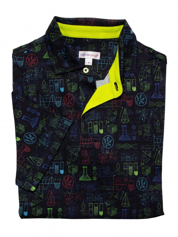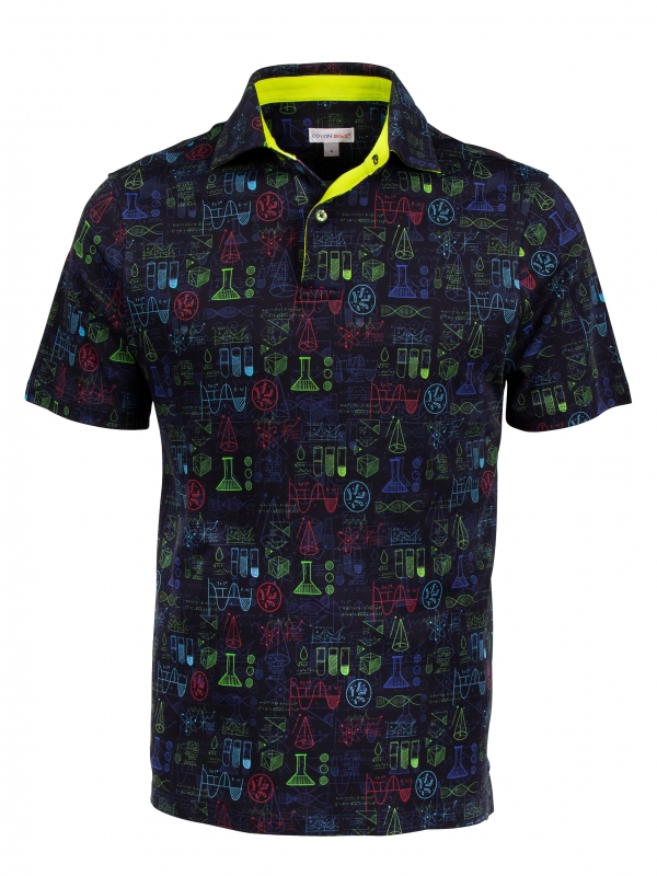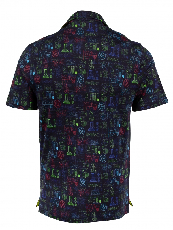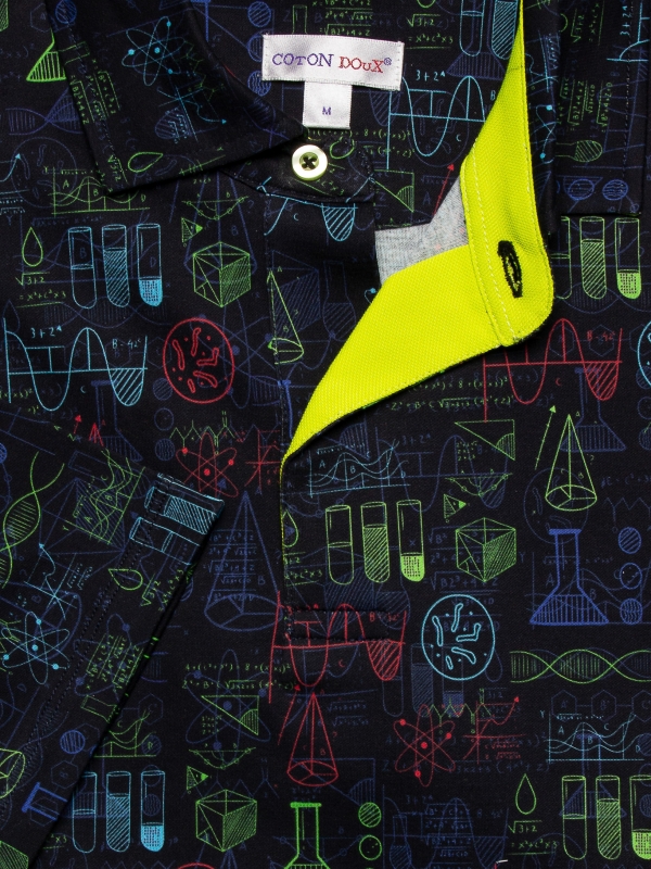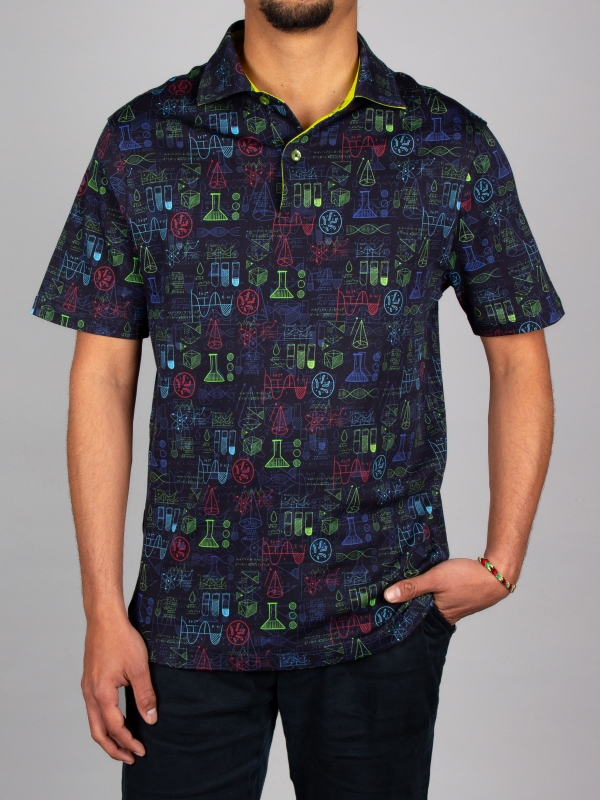 Don your future chemistry-print polo shirt, a garment destined to trigger a vibrant reaction as soon as it appears. Let the equations of captivating design dance across your form, changing the style equation forever. With a flattering silhouette, two-button placket and luxurious mercerised cotton jersey, this polo is a symphony of details meticulously crafted to enhance your presence. But the truly daring feature? An anise green pique cotton collar, a bold emerald touch that’s sure to leave a lasting impression.