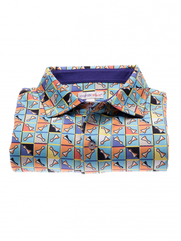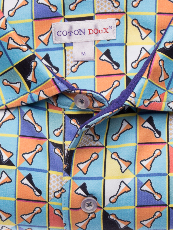 Coton Doux Men’s Regular Fit Polo With Chess Game Print