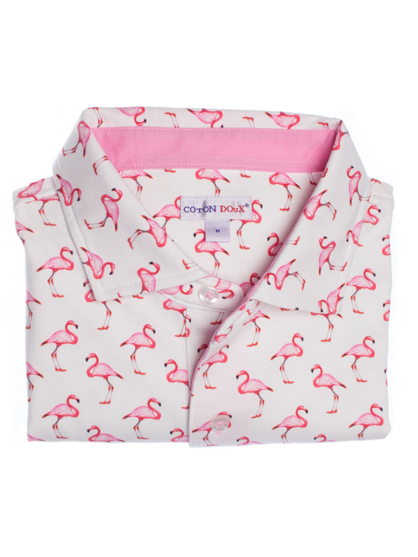 Coton Doux Men’s Regular Fit Polo With Flamingo Print