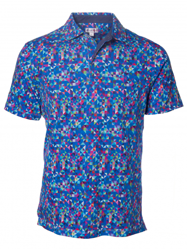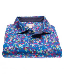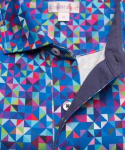 Try the electric blue with this regular fit polo with geometrical print. Trendy look guaranteed thanks to the colors and pleasure while wearing it with the slim fit and two-button placket. Ideal for a night between friends, this cotton jersey polo will put you in the spotlight.