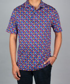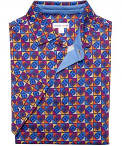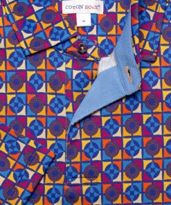 This mosaic-print polo features a striking contrast of colours and shapes. Shades of blue, orange, raspberry and yellow intermingle in a captivating visual harmony. Its regular fit, two-button placket and cotton piqué collar give it a confident, graceful look. Take your chance to shine and enjoy the softness of its mercerised cotton jersey fabric.