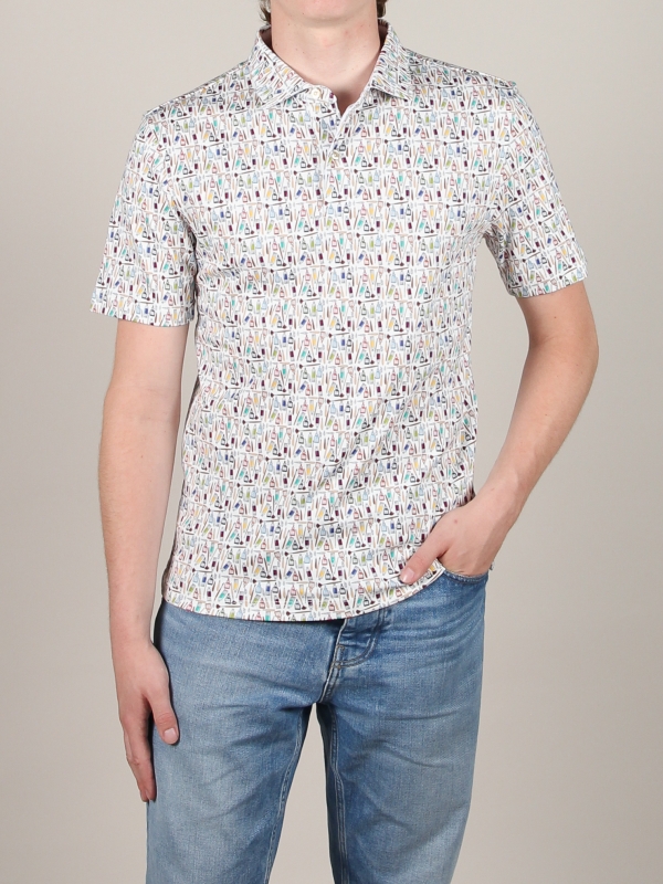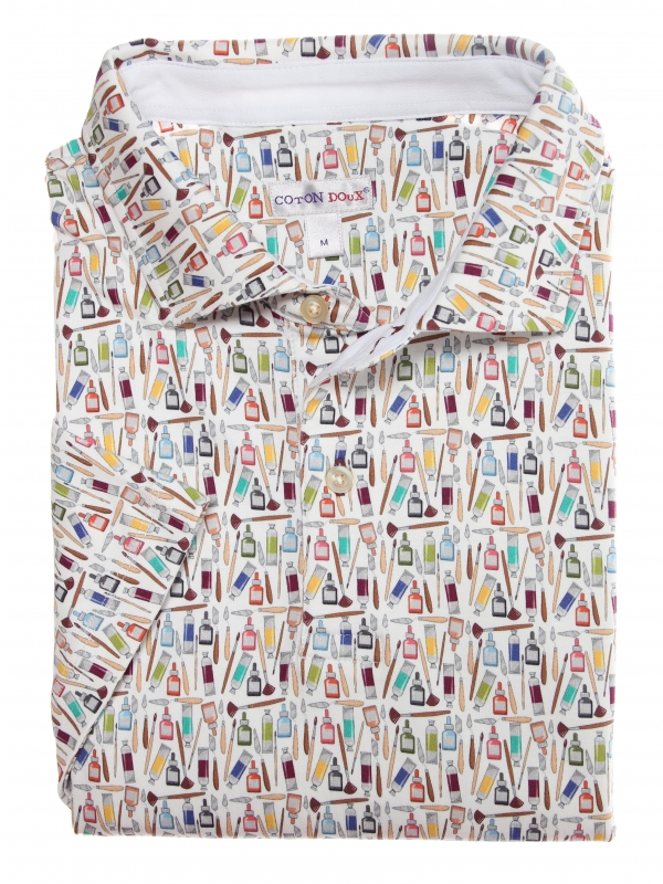 Reawaken your originality with this paint material printed polo! Its timeless style is proven by the cotton pique collar, mercerized cotton jersey and two-button placket. Also enjoy the freedom of movement with its regular fit. Enhance your outfit by pairing this polo with raw denim and colored sneakers for an artsy touch 😉