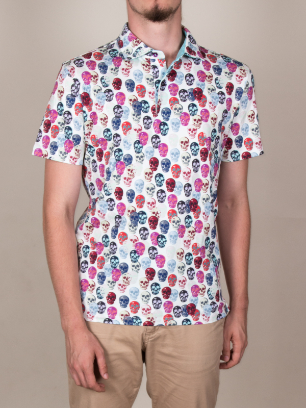 Coton Doux Men’s Regular Fit Polo With Pop Skull Print