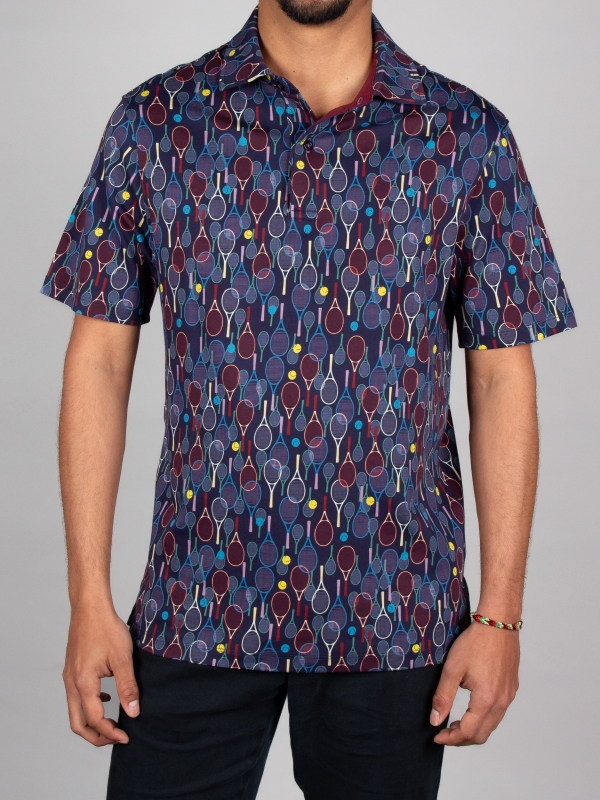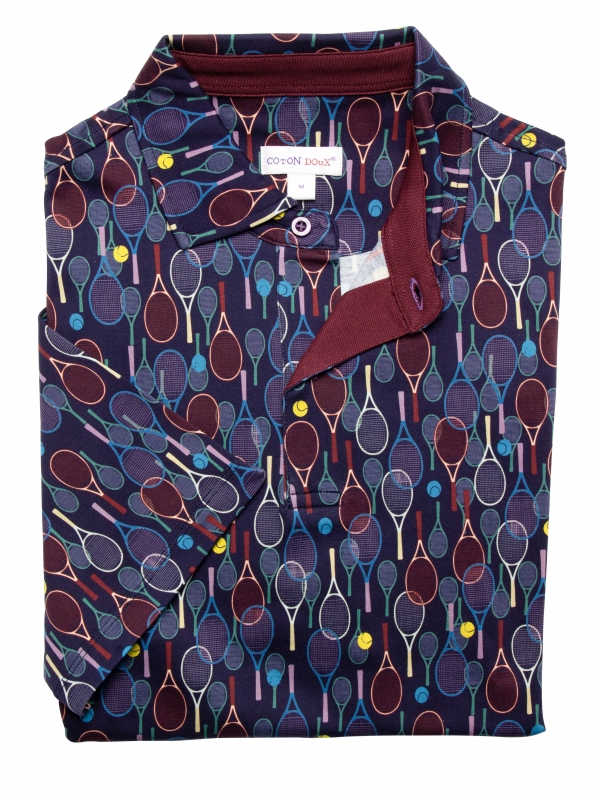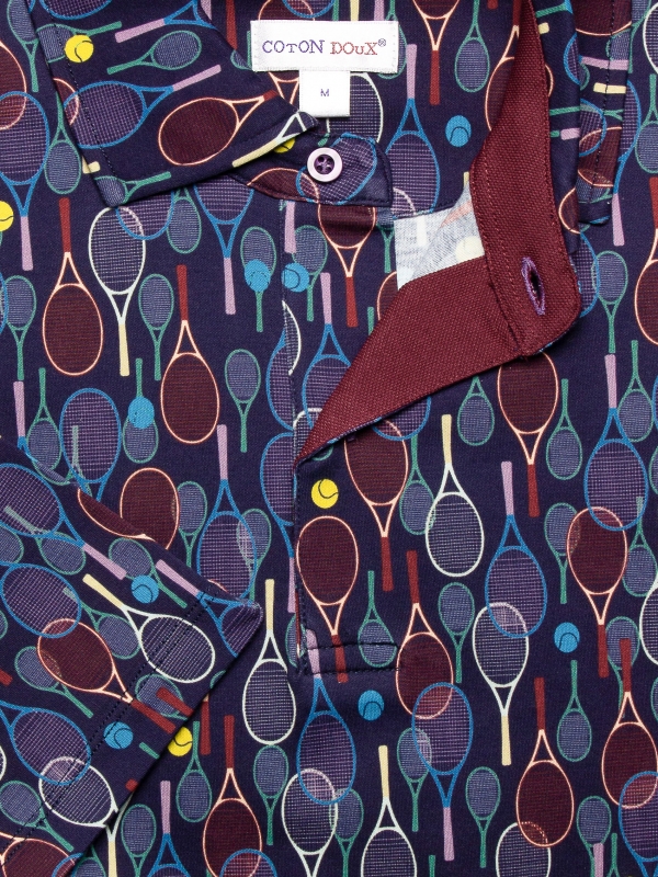 Coton Doux Men’s Regular Fit Polo With Tennis Print