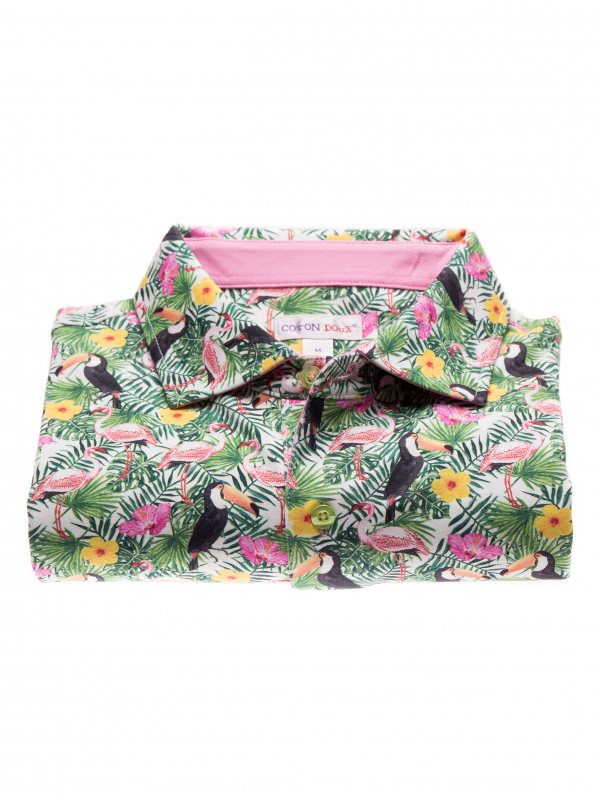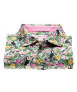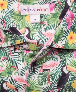 Are you feeling the smell of the summer? It is because you just found this polo! Flamingos and toucans are knowing pattern in Coton Doux and in this collection they came together one more time in a new version with the sunny touch of the poppies flowers. The regular fit, double button and the light of the cotton of jersey make this piece really confortable to wear. If you were looking for you favorite polo for this summer, this is the one. Match with a pair of jeans, white sneakers and enjoy the hot days!