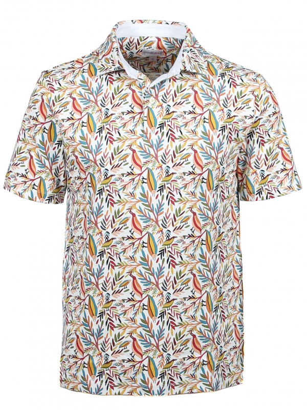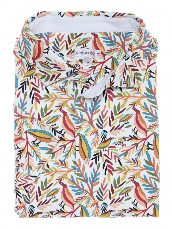 Lovers of nature? Then this tree print polo is for you! Made of mercerised cotton jersey, you won’t believe how soft it is! Its cotton piqué collar and two-button placket guarantee comfort while the slim fit gives you a great silhouette 😉 Pair it with a camel chino and a panama hat to push the look to the limit!