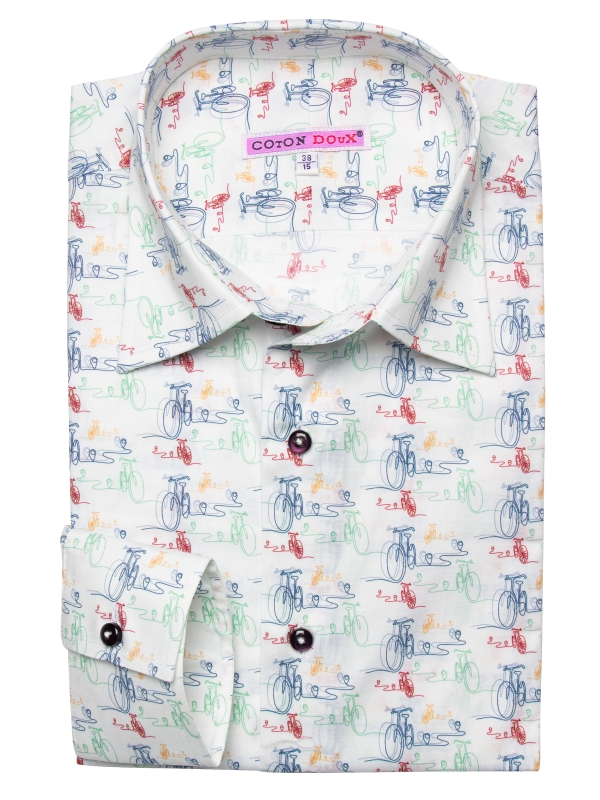 Coton Doux Men’s Regular Fit Shirt With Bike Print