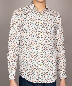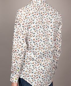 Unleash your inner freedom with this shirt featuring a stunning bird print that flutters across a pristine white backdrop. Each bird adds a dynamic and lively spirit to your ensemble. The Milanese collar and single cuffs offer a sharp contrast. Perfectly paired with dark denim or chinos, this shirt effortlessly combines nature’s beauty with contemporary style, ensuring you stand out with every step.