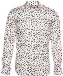 Unleash your inner freedom with this shirt featuring a stunning bird print that flutters across a pristine white backdrop. Each bird adds a dynamic and lively spirit to your ensemble. The Milanese collar and single cuffs offer a sharp contrast. Perfectly paired with dark denim or chinos, this shirt effortlessly combines nature’s beauty with contemporary style, ensuring you stand out with every step.