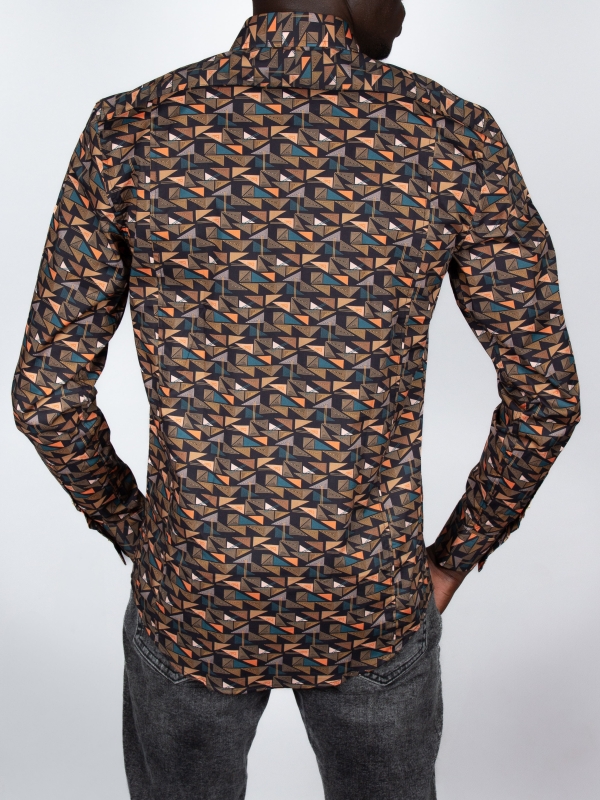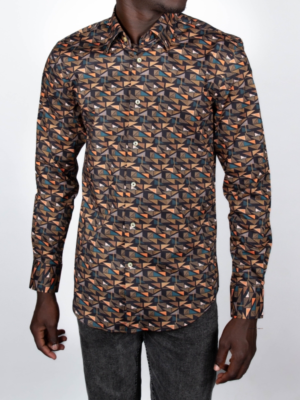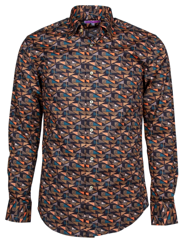 Coton Doux Men’s Regular Fit Shirt With Contemporary Triangles Print