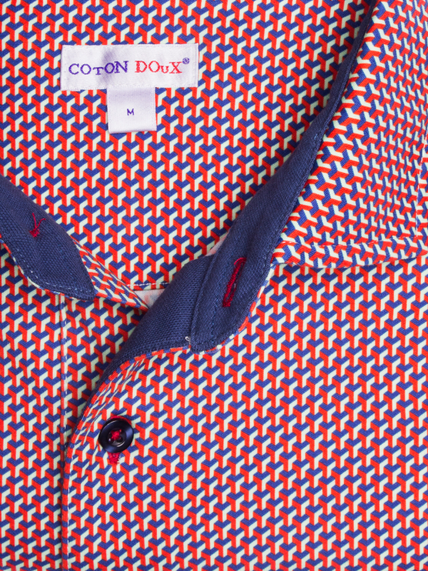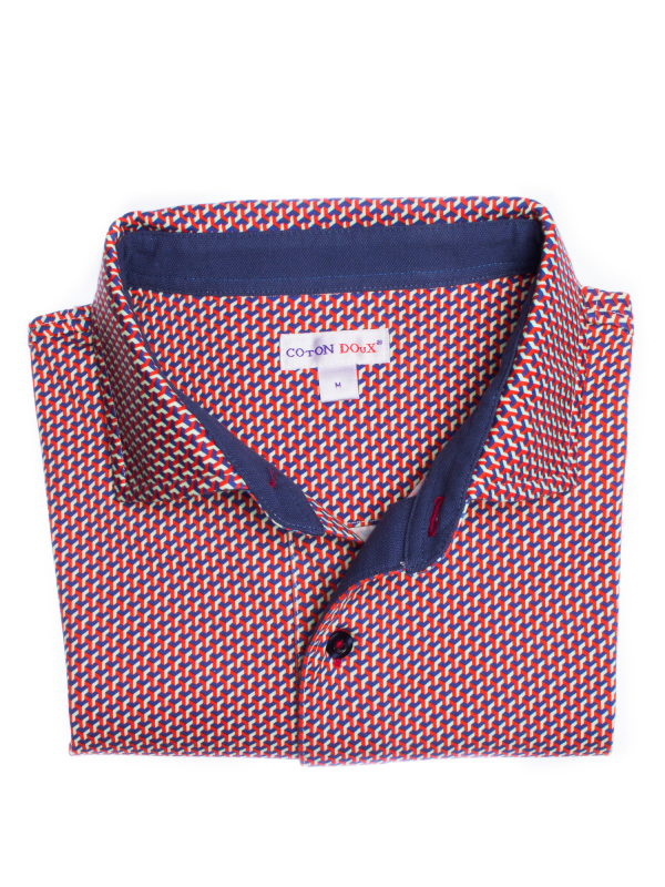 Coton Doux Men’s Regular Fit Shirt With Geometrical Cube Print