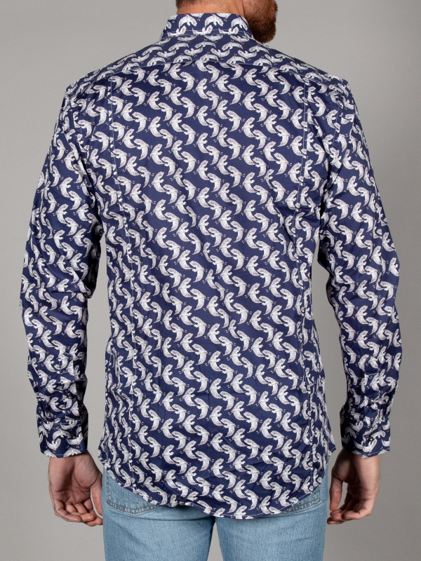 Grace your wardrobe with our Herons Print shirt, adorned with majestic heron motifs that exude tranquility and grace. Featuring a classic collar and cut in a regular fit for timeless comfort and style, this shirt is perfect for casual outings.Pair it with crisp white trousers and loafers for a fresh and refined look, it pledges to enhance your appearance with an air of tranquil sophistication wherever you go.