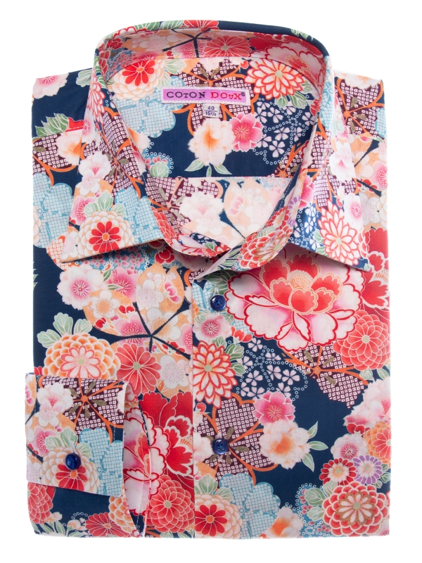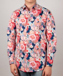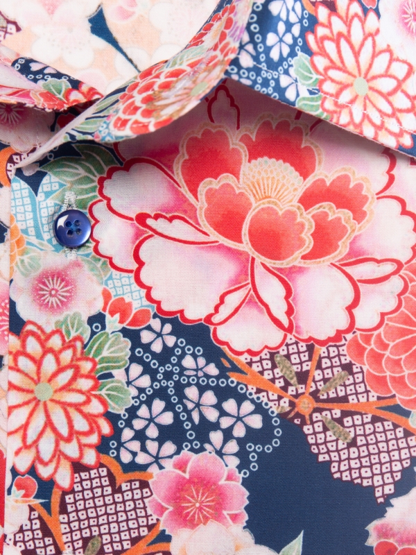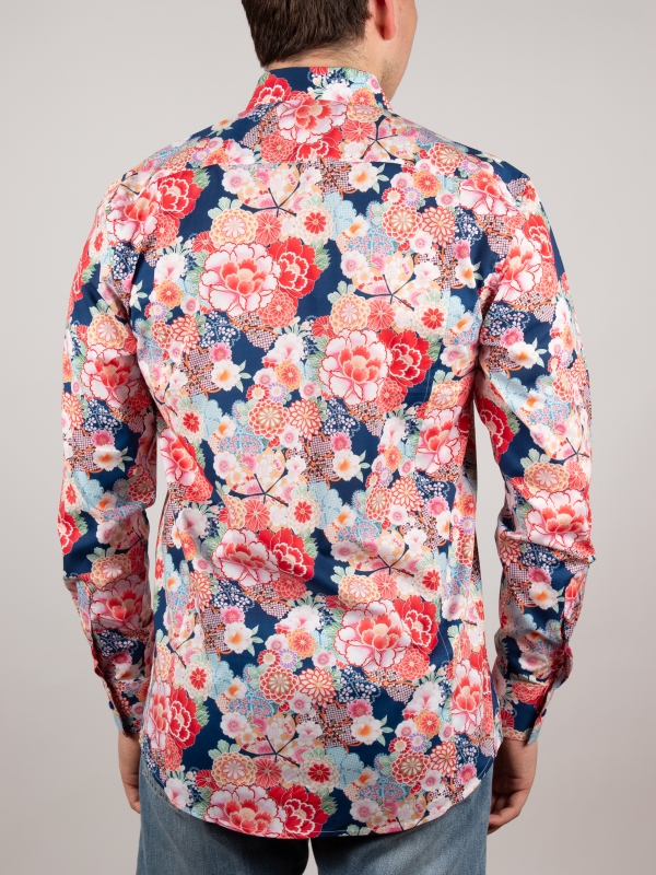 Immerse yourself in the soft elegance of this Japanese floral print shirt. With a regular fit, structured Milanese collar and minimalist cuffs, it exudes sophistication. The delicate floral pattern is inspired by the serene Zen aesthetic, capturing the subtle beauty and grace of Japanese culture. An ideal choice for a refined look with poetic charm.