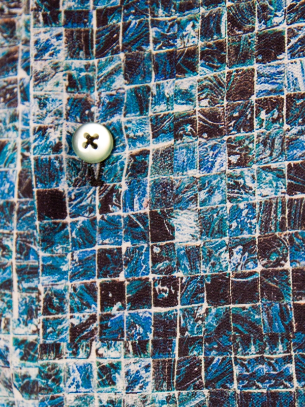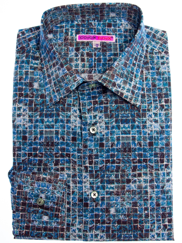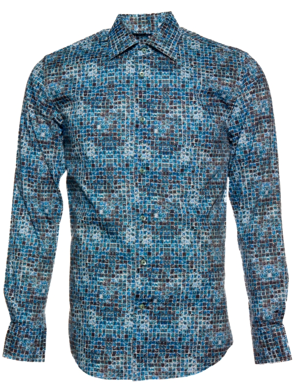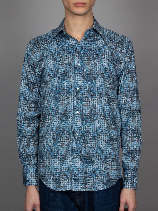 Turn heads in this striking blue mosaic print shirt. Featuring a sharp Milanese collar, single cuffs, and a regular fit, it balances bold geometric design with laid-back ease. Dress it up with chinos or keep it casual with jeans this versatile piece is your go-to for effortless style. Elevate your everyday look with a splash of color and confidence.