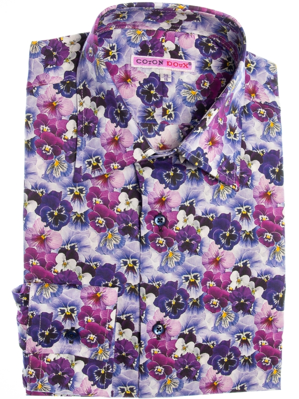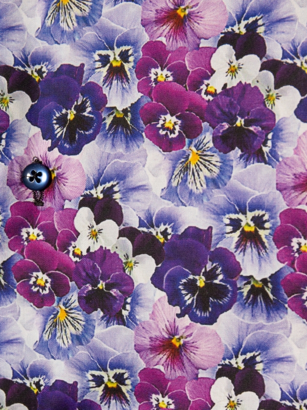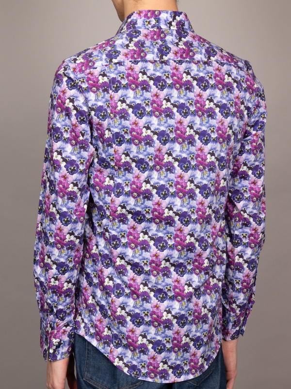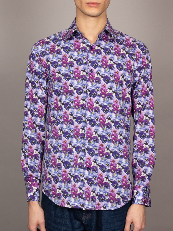 A field of purple pansies graces this shirt, each bloom unfolding delicately against the fabric like a soft whisper of spring. The Milanese collar and single cuffs add an air of quiet sophistication, while the regular fit offers effortless comfort. A perfect fusion of nature’s beauty and refined design, this shirt pairs with dark jeans, bringing an enchanting touch to both casual and smart occasions.
