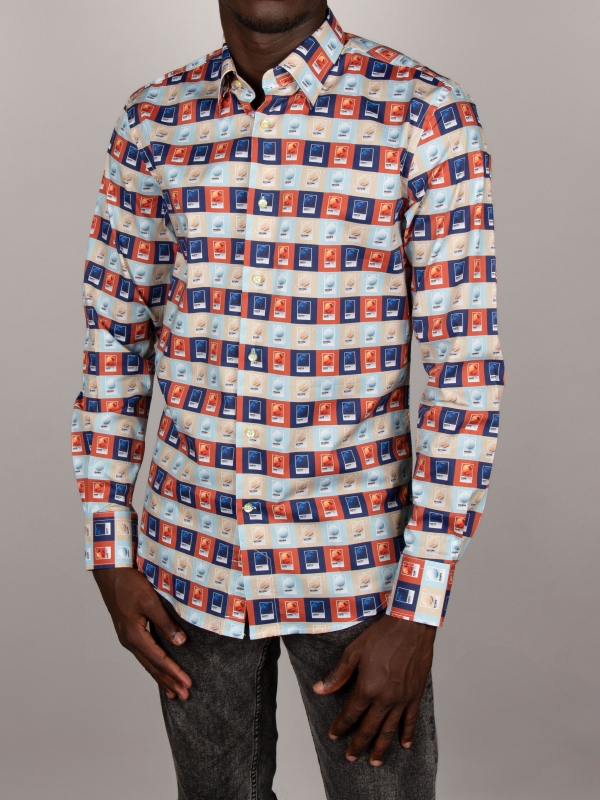 Embark on an intergalactic journey with our Planets Print shirt. Featuring a cosmic array of planets, each with its own unique charm and colors, this shirt is a stellar addition to your wardrobe. With a classic collar and tailored in a regular fit for comfort and style, Combine it with dark wash denim jeans and sleek sneakers for a modern and cosmically-inspired ensemble.This shirt guarantees to elevate your style to stellar heights with cosmic charm!