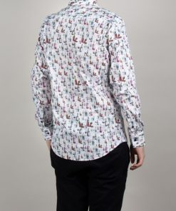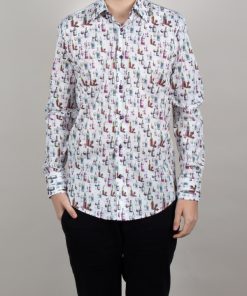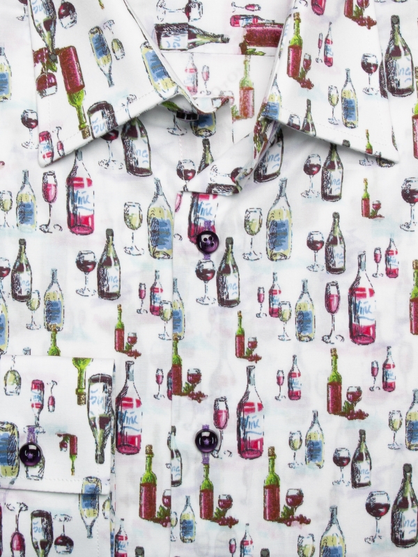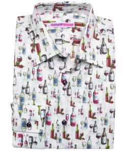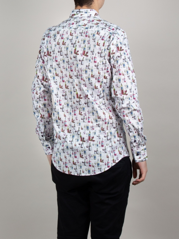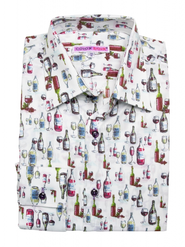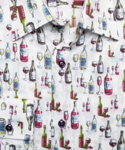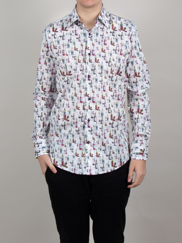 A festive atmosphere is in the air, and this wine bottle print shirt with its regular fit will give you the vibes.The Milanese collar adds a modern touch, and the simple cuffs keep the look timeless. Pair this shirt with dark indigo jeans and polished brown leather shoes for a casual yet sophisticated look. The wine-themed print adds a touch of character, making this outfit both tasty and eye-catching.