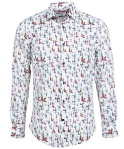 A festive atmosphere is in the air, and this wine bottle print shirt with its regular fit will give you the vibes.The Milanese collar adds a modern touch, and the simple cuffs keep the look timeless. Pair this shirt with dark indigo jeans and polished brown leather shoes for a casual yet sophisticated look. The wine-themed print adds a touch of character, making this outfit both tasty and eye-catching.