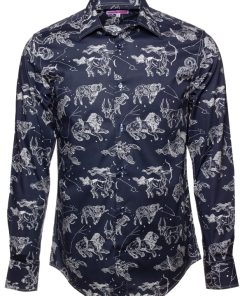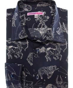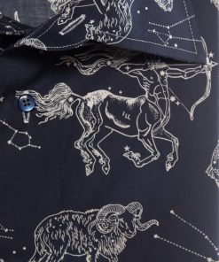 Add a celestial spark to your wardrobe with this star sign print shirt. Featuring a regular fit that shapes a sleek, modern silhouette, it’s detailed with a polished Milanese collar and minimalist cuffs. Delicately rendered constellations and celestial symbols create a mysterious and captivating pattern that enchants at every glance. Ideal for those who want to showcase their style with personality and a subtle cosmic touch.