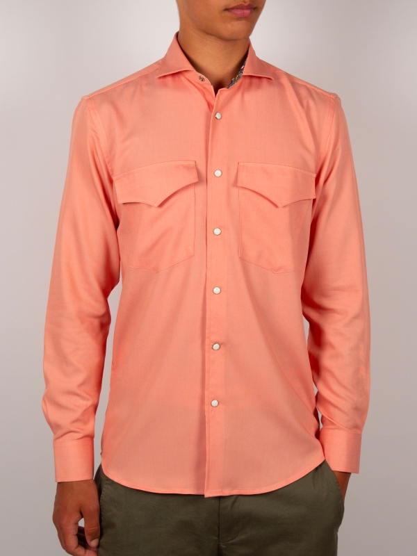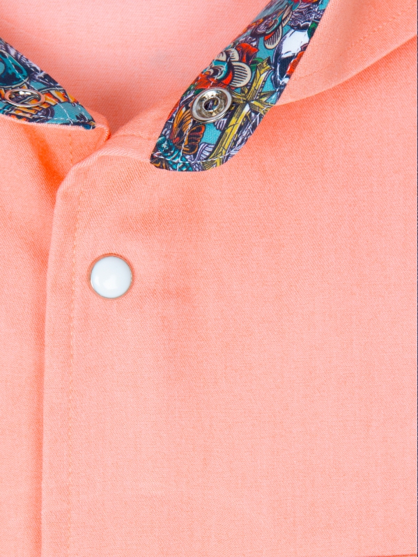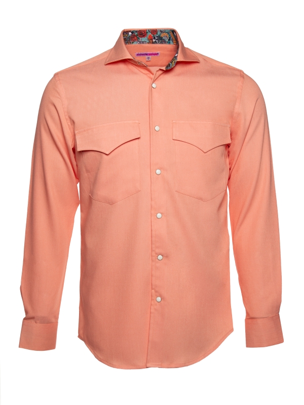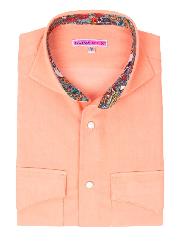 Reinvent the western spirit with this coral denim shirt, featuring a regular, tailored fit and refined finishing touches. Its cutaway collar and snap buttons add a distinctly modern edge, while the tattoo-inspired inner contrast brings an artistic, underground vibe.