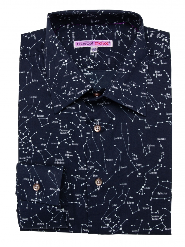 Coton Doux Men’s Slim Fit Shirt With Constellation Print