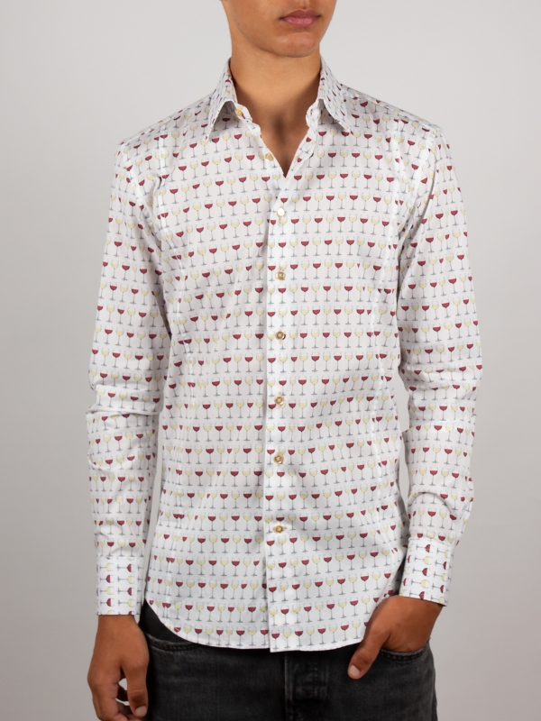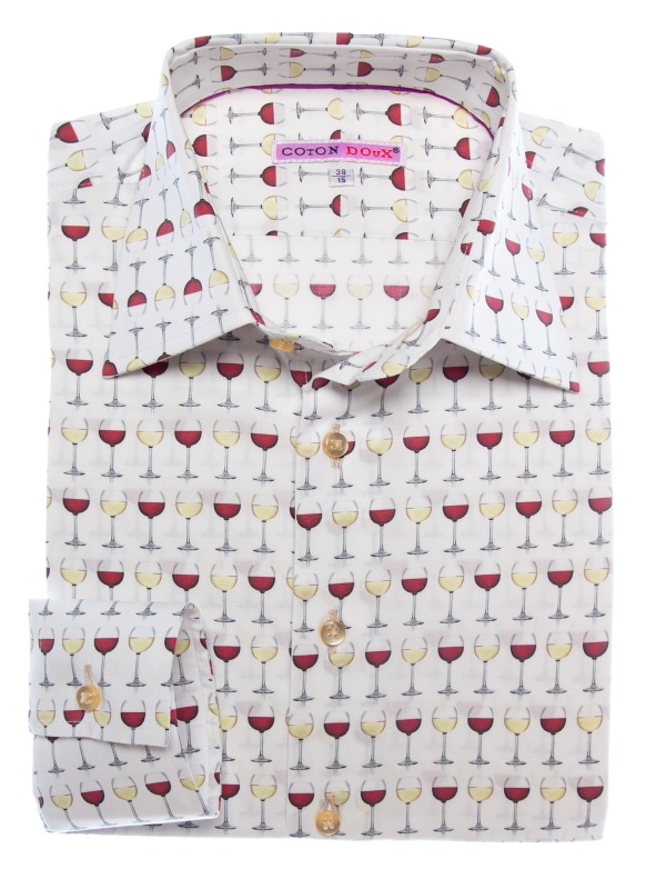 Coton Doux Men’s Slim Fit Shirt With Glass Of Wine