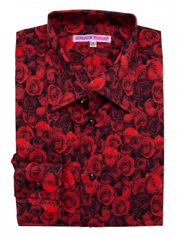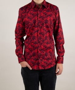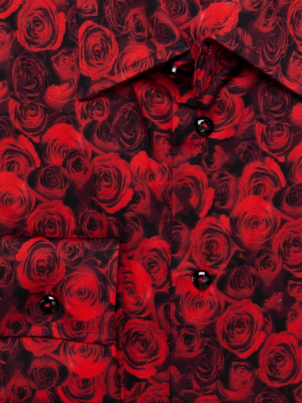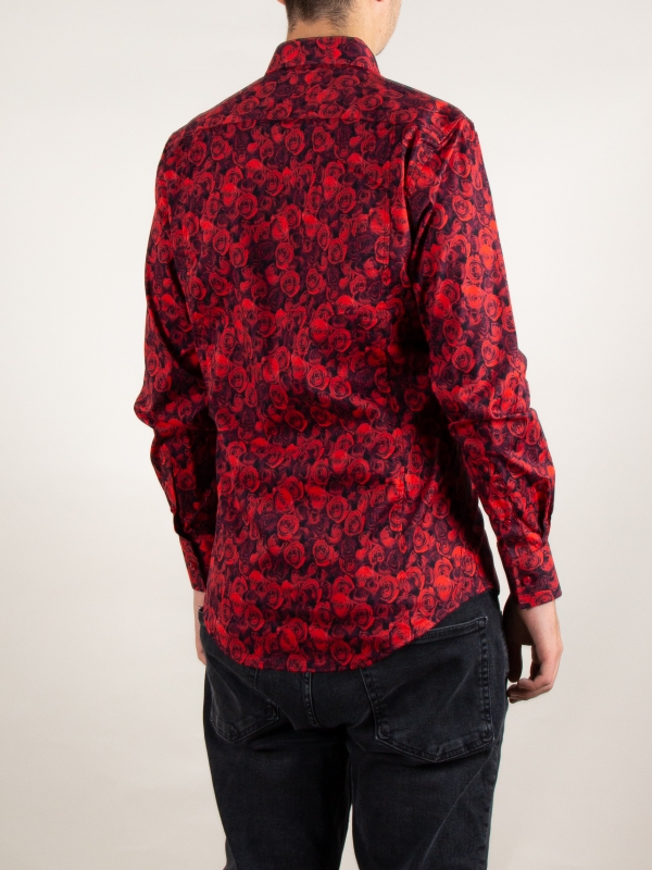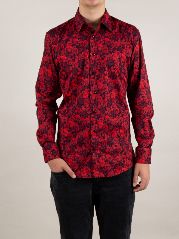 Freshly picked to be given as a gift, their beauty will no longer be fleeting. Thank the shirt with red rose print for this timeless gift with its Milanese collar combining class and modernity. Slim fit, black pants and varnished derbies will make a well filled bouquet. For the occasion, get ready to brandish the simple cuffs without restraint!