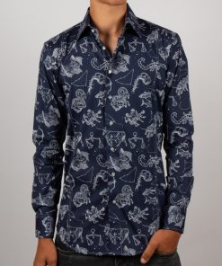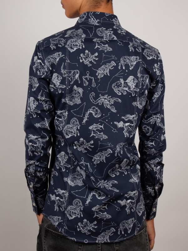 Showcase your personality with thisslimfitted shirt featuring a Zodiac sign print. Its original and harmonious design invites contemplation, while the Milanese collar and simple cuffs ensure a touch of elegance. The cut enhances the silhouette, making it perfect for both the office and your most inspired evenings.