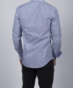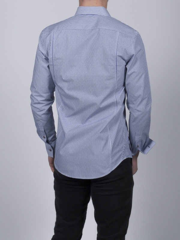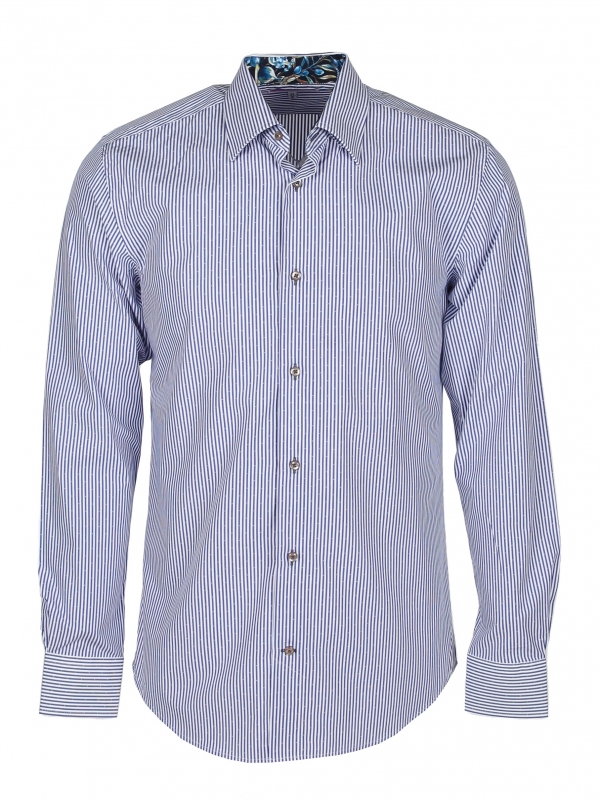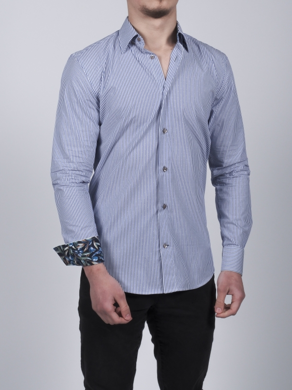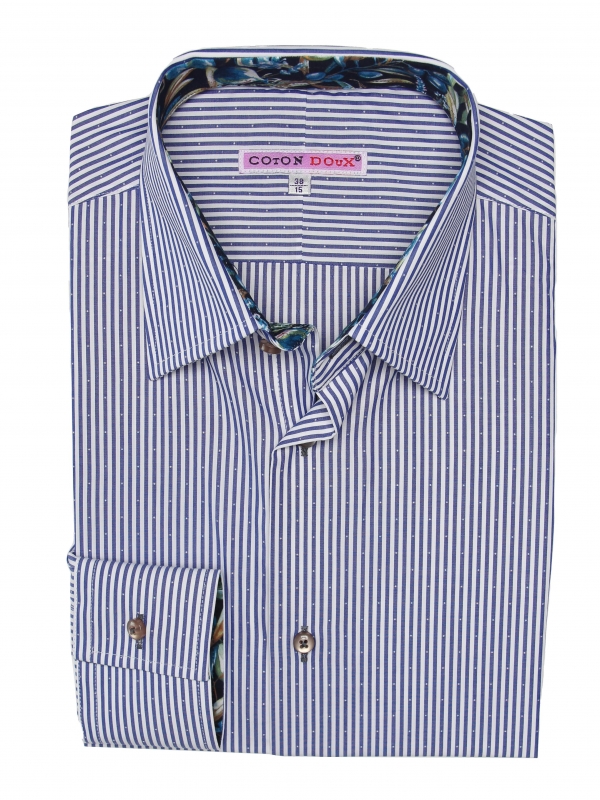 Coton Doux Men’s White And Blue Stripes Regular Shirt With Olive Tree Inner Linning Print