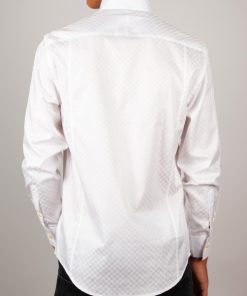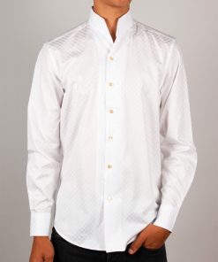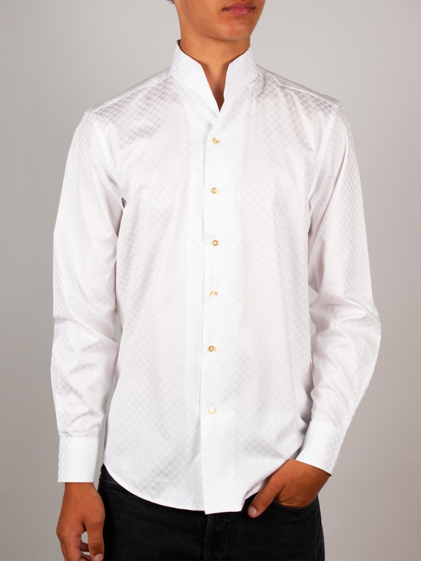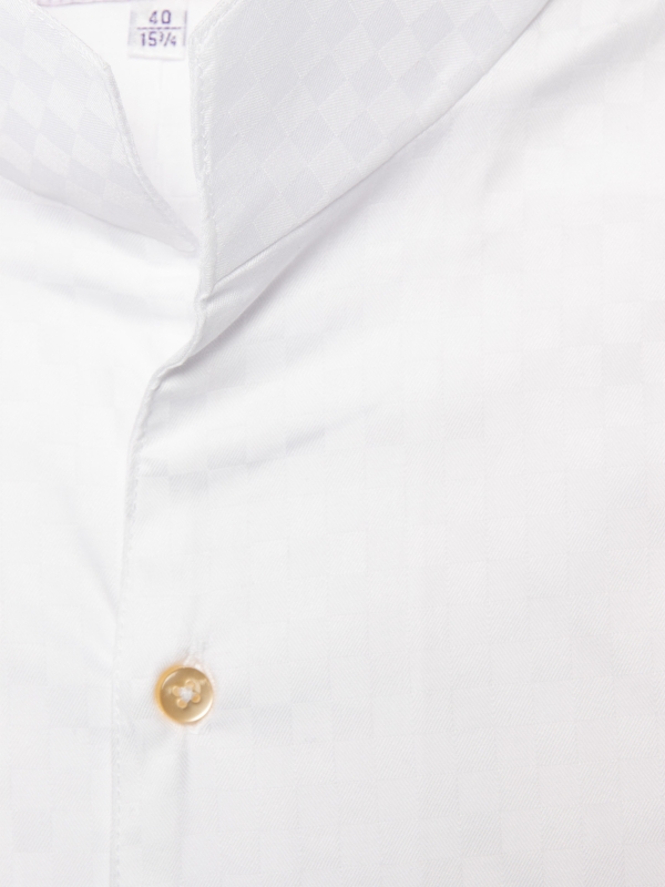 Minimalist and modern, this white shirt stands out with its tailored straight cut that elegantly defines the silhouette. The stand-up collar adds a contemporary touch while maintaining understated sophistication. Made from soft, comfortable fabric, it transitions effortlessly from professional wear to more relaxed looks. Simple cuffs complete the piece with subtle elegance.