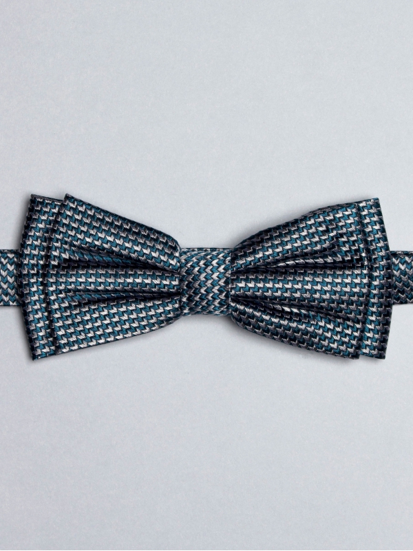 Coton Doux Uniex Blue Bow Tie With Grey Houndstooth Patterns